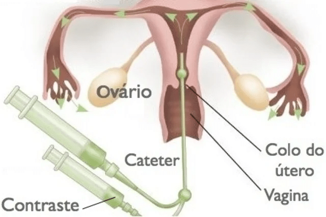 É o melhor exame para avaliar a função tubária e a competência do trato reprodutivo feminino para alcançar uma gravidez natural ou após tratamento com IIU.